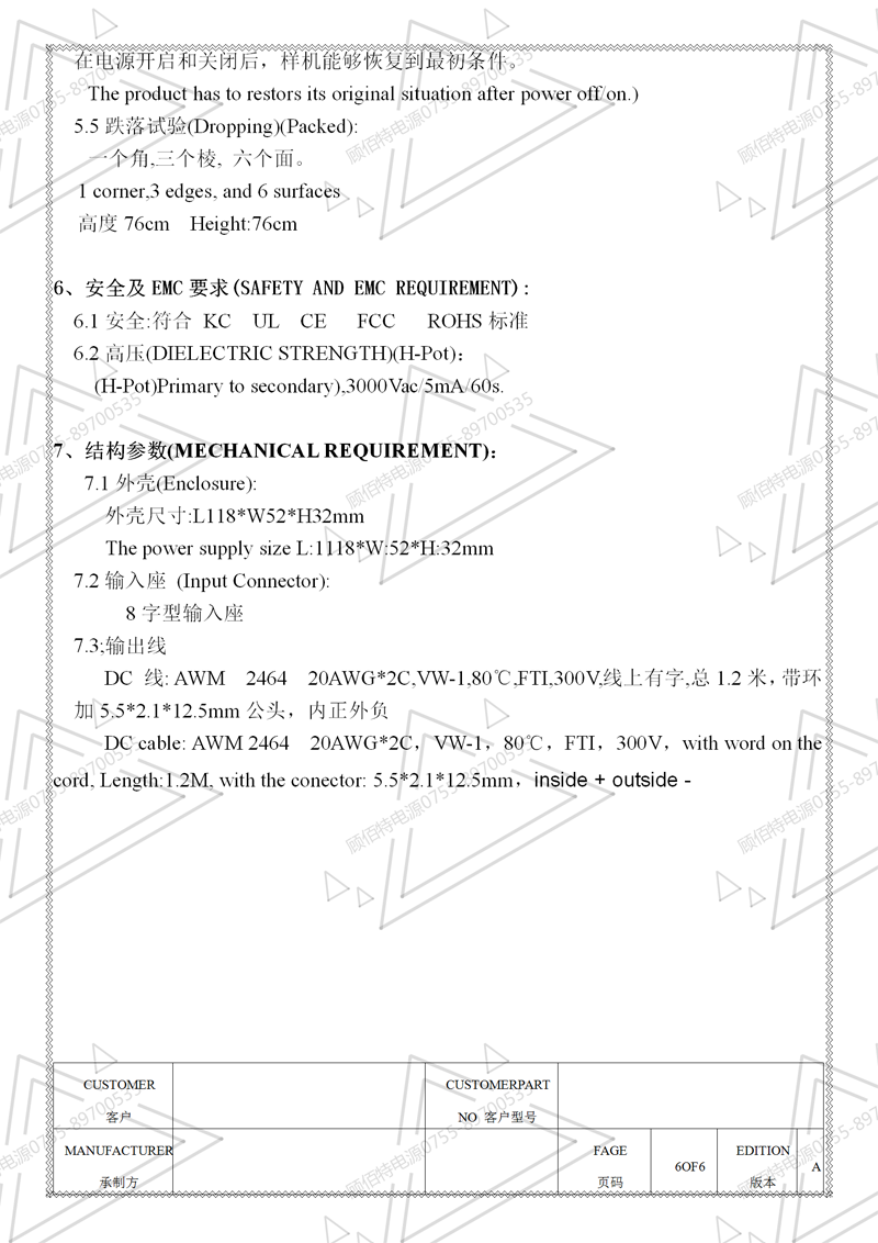 24V6A電源適配器帶PFC電路規格書(新模具)