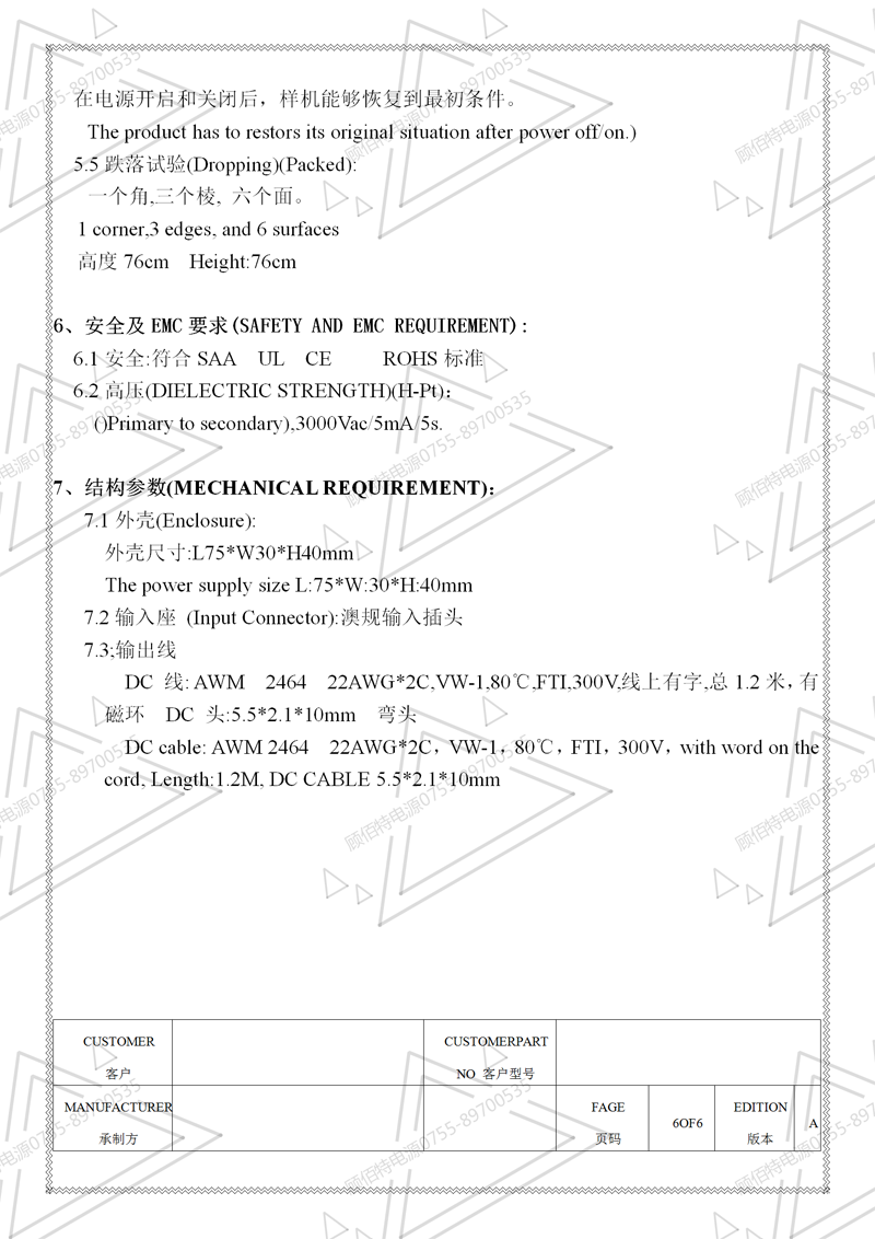 24V6A電源適配器帶PFC電路規格書(新模具)